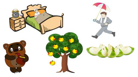 Дальше. Яблоня и падающее яблоко. А когда яблоки падают? Когда яблоко созрело, тогда и упало, а иначе висит и дозревает. Значит, здесь можно использовать алгоритм с ветвлением.
