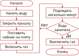 Рассмотрим алгоритм кипячения воды в чайнике и составим его блок-схему. Чтобы вскипятить воду в чайнике нужно: