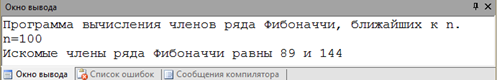 writeln (‘Программа вычисления членов ряда Фибоначчи, ближайших к n.’);