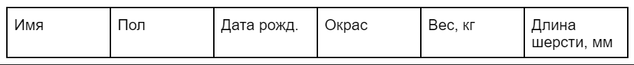 Теперь передвинем границы столбцов. Чтобы сделать столбец Имя пошире, а Пол поуже, поместим указатель мыши на границу между ними. Указатель изменится, намекая, что теперь границу можно буксировать. Перетащим её туда, куда нужно. Так же поступим с остальными столбцами. Теперь наша таблица готова к заполнению.