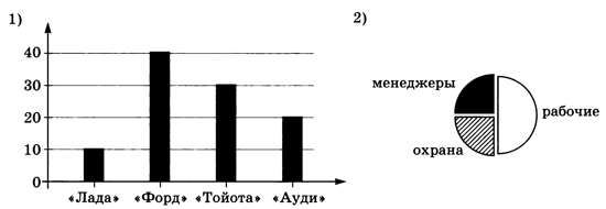 Ответ: правильная диаграмма показана на рис. 3.5, б. Задача 2. В фирме «Слонопотам» работают менеджеры, рабочие и охрана. Они ездят на машинах четырёх марок: «Лада», «Форд», «Тойота» и «Ауди», каждый имеет только одну машину. На диаграмме 1 (рис. 3.6) показано количество работников, имеющих машины определённой марки, а на диаграмме 2 — соотношение менеджеров, рабочих и охраны. Какие из этих утверждений следуют из анализа диаграмм? а) Все «форды» могут принадлежать менеджерам. б) Все охранники могут ездить на «ауди». в) Все «тойоты» могут принадлежать рабочим. г) Все рабочие могут ездить на «фордах».