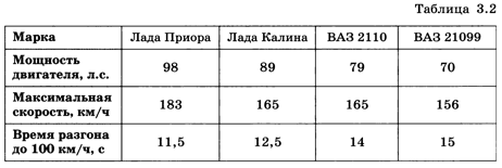 Именно так хранится информация в базах данных. Возможен и другой вариант таблицы, когда роли строк и столбцов меняются. В первом столбце записываются названия свойств, а данные в каждом из следующих столбцов описывают свойства какого-то объекта. Например, вот таблица с характеристиками разных марок автомашин (табл. 3.2).