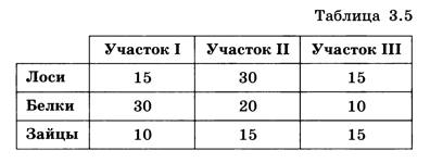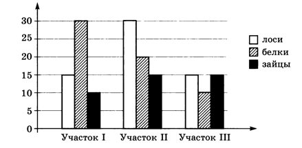 Задача 1. Биологи пересчитали лосей, белок и зайцев на трёх участках заповедника и построили диаграмму (рис. 3.4).