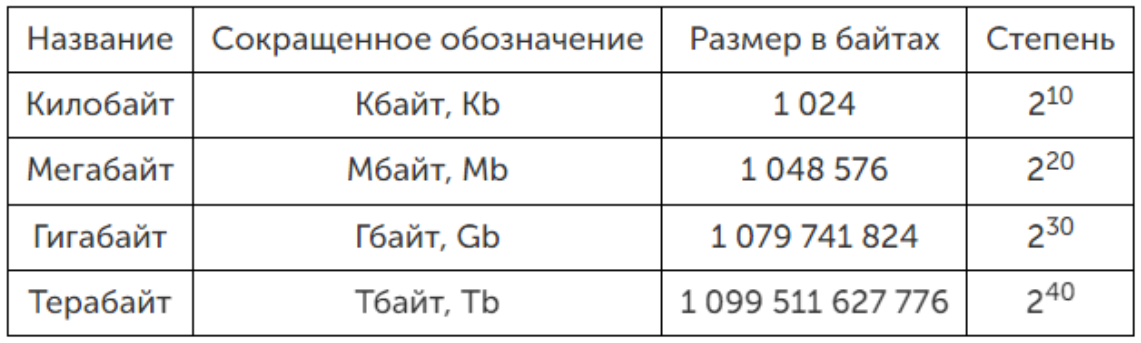 Кроме бита и байта, существуют и другие единицы измерения информации.