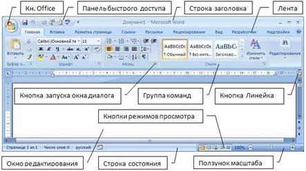 Интерфейс текстового процессора Word состоит из следующих элементов.