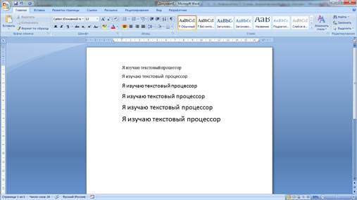 4. Изменим размер шрифта. Выделяем первую строку и устанавливаем размер шрифта 14 пунктов (рис. 16).