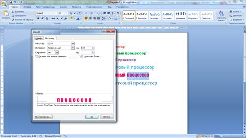 3. Устанавливаем разреженный интервал на 5 пунктов (бывают Обычный, Разреженный, Уплотненный интервалы). В образце отражается текущий вид данного слова.