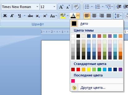 По умолчанию в Word 2007 при создании нового пустого документа для основного текста установлен цвет шрифта «авто», который на белом фоне отображается как черный.