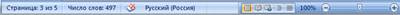 Строка состояния (рис. 9) показывает количество страниц, число слов, а также язык, который используется в данный момент в документе.