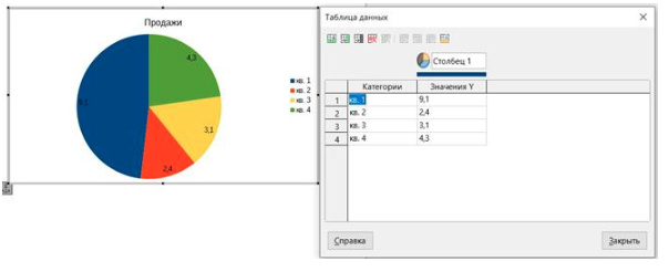 Круговая диаграмма применяется для иллюстрации долей или процентного распределения значений в целом (рис. 3).